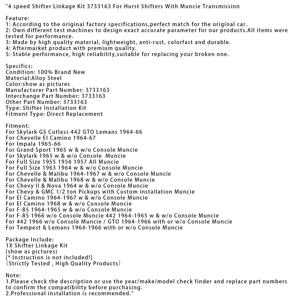 4 -nopeuden vaihdevivun taistelupakkaus 3733163 Hurst -vipuille Muncie -voimansiirrolla