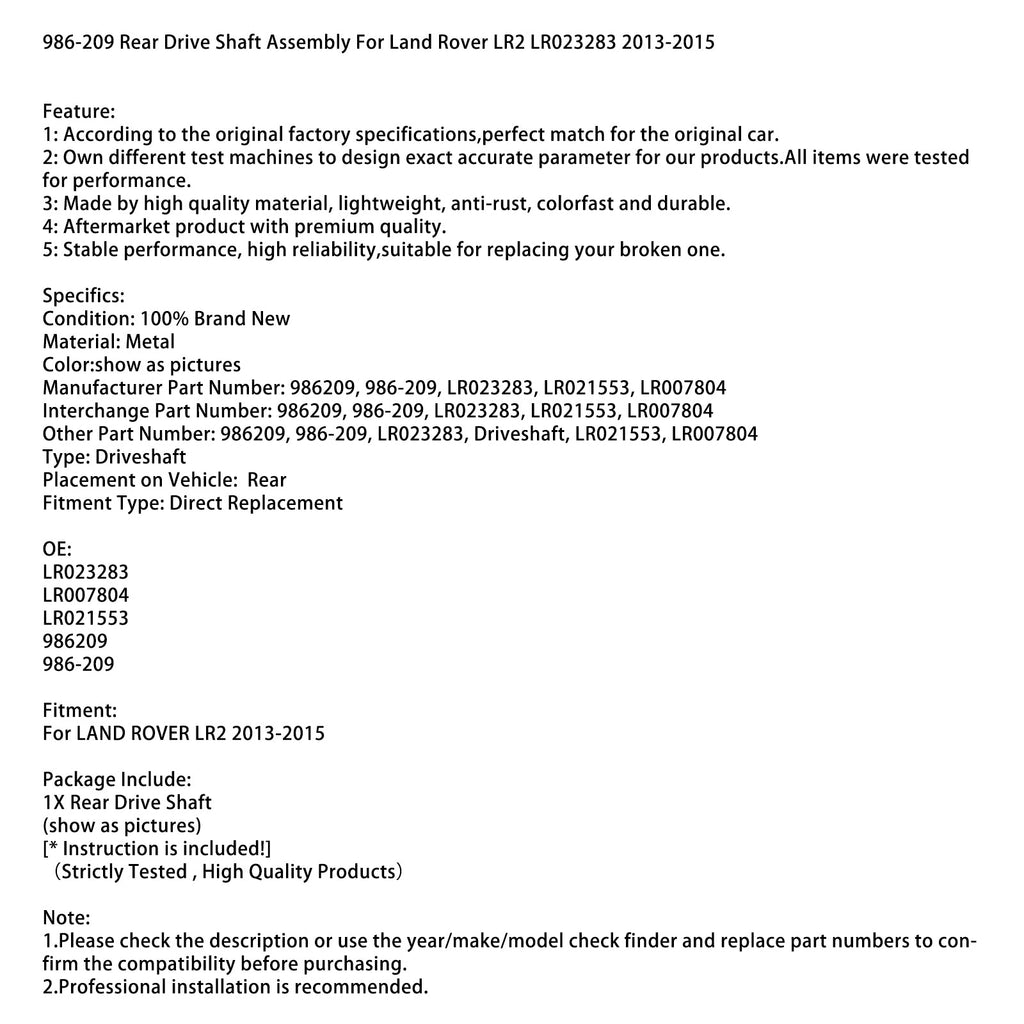 Muu viite : 986209, 986-209, LR023283, vetoakseli, LR021553, LR007804