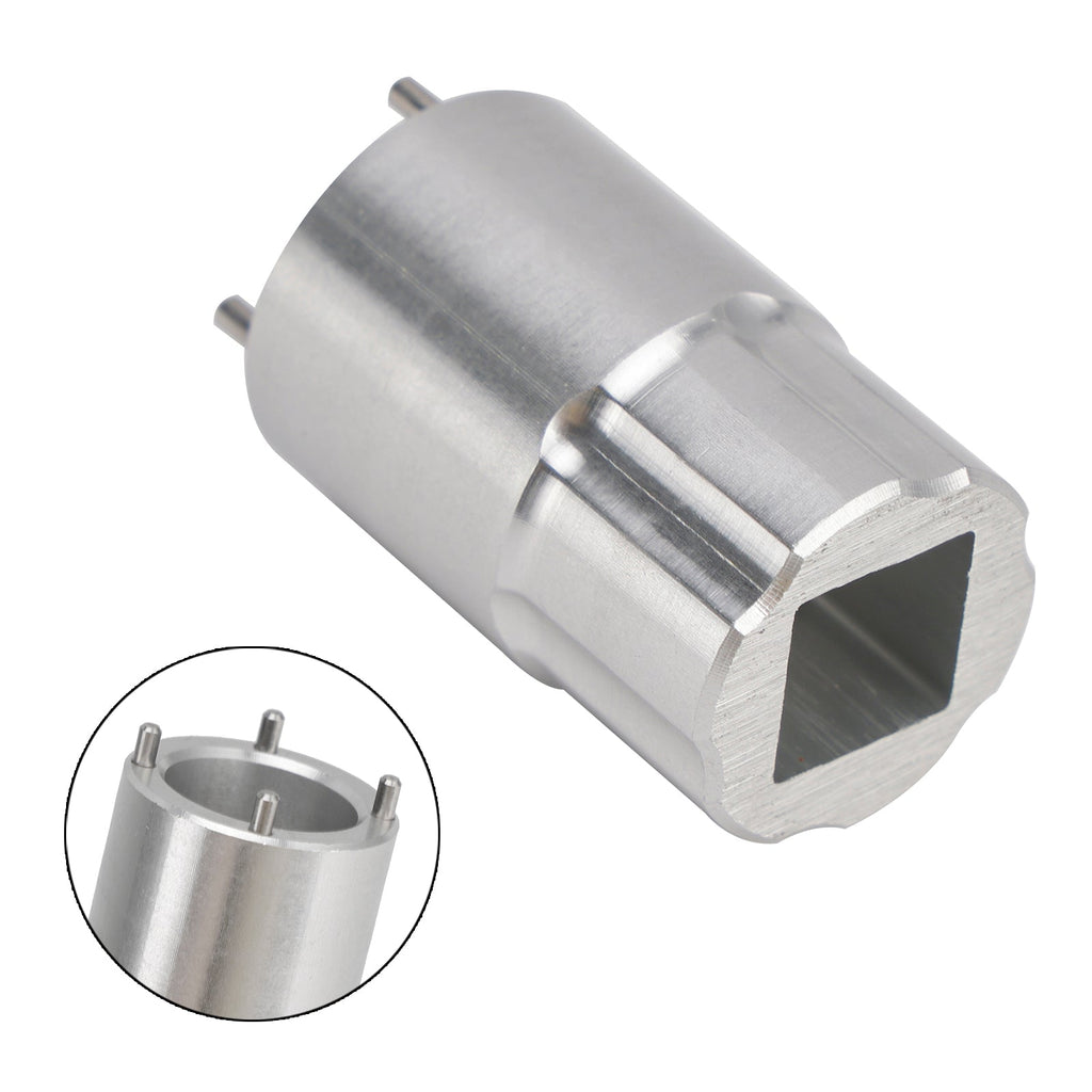 Tämä työkalu irrottaa DPX2:n pohjaventtiilin korkin. Se on yhteensopiva Foxin osanumeron 398-00-763 kanssa. Se on varustettu karkaistuilla terästapeilla ja 3/8" neliövääntiöllä.8"Lisäsimme myös sivulovet paremman otteen takaamiseksi, kun osa on öljyinen.