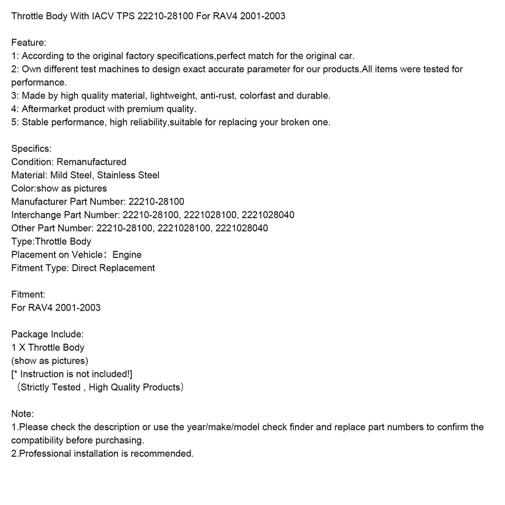 Kaasuläppäkotelo IACV TPS 22210-28100:lla RAV4:lle 2001-2003