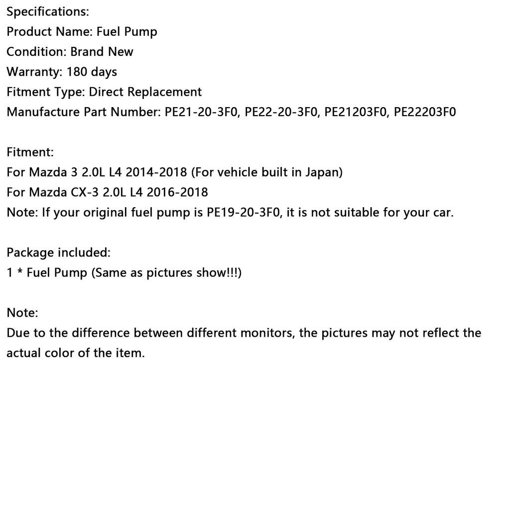 Huomautus: Jos alkuperäinen polttoainepumppusi on PE19-20-3F0, se ei sovi autoosi.
