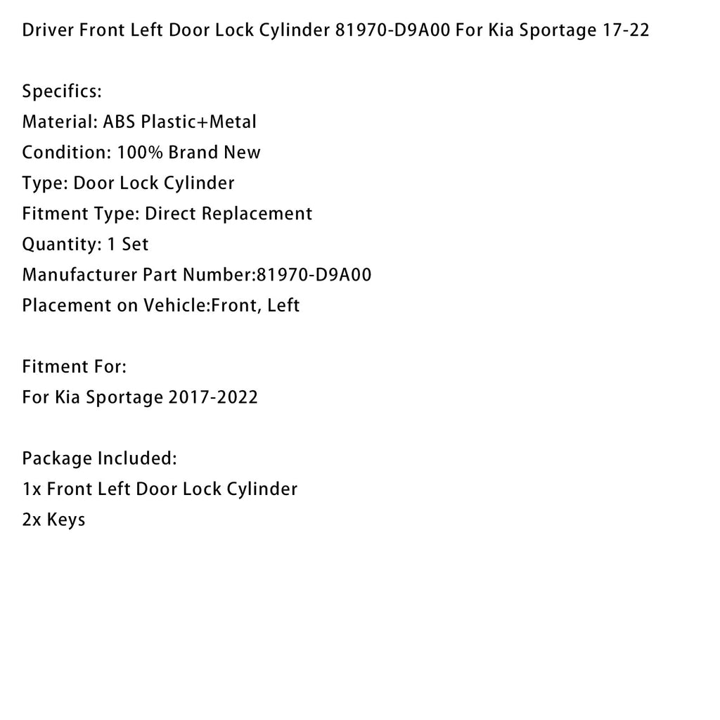 Vasemman etuoven lukkosylinteri (kuljettajan puoli) 81970-D9A00 yhteensopiva Kia Sportage 2017-2022 kanssa