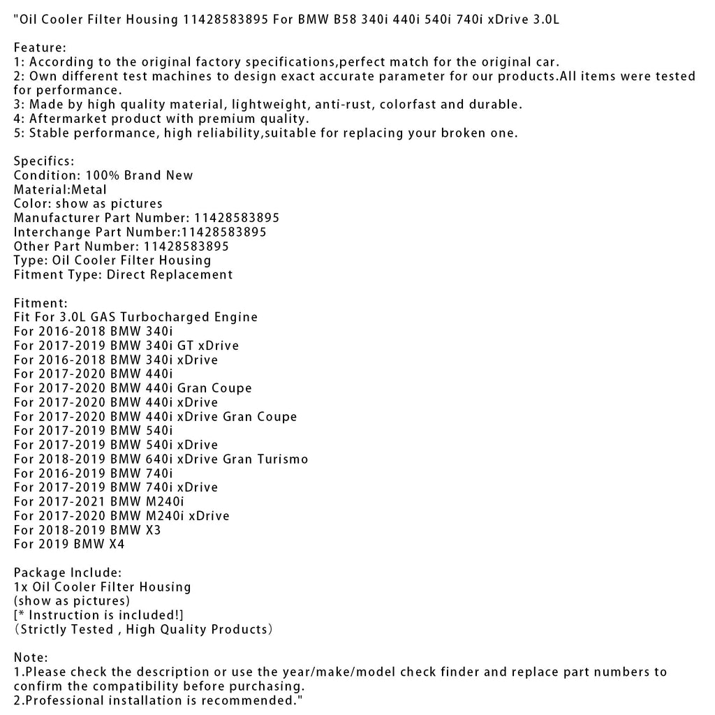 Jäähdyttimen suodattimen kotelo'BMW 340i 3.0L 2016-2018 turboahdetun bensiinimoottorin öljy 11428583895