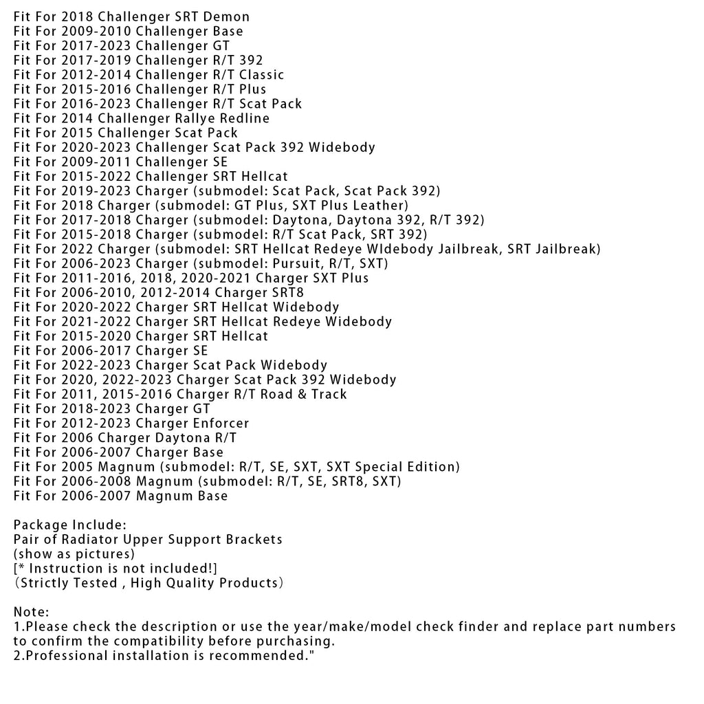 Yhteensopiva vuosien 2017–2018 Charger-mallien (alamallien) kanssa : Daytona, Daytona 392, R/T 392)
