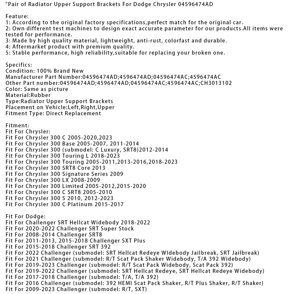 Jäähdyttimen ylemmät kiinnikkeet Dodge Chrysleriin 04596474AD