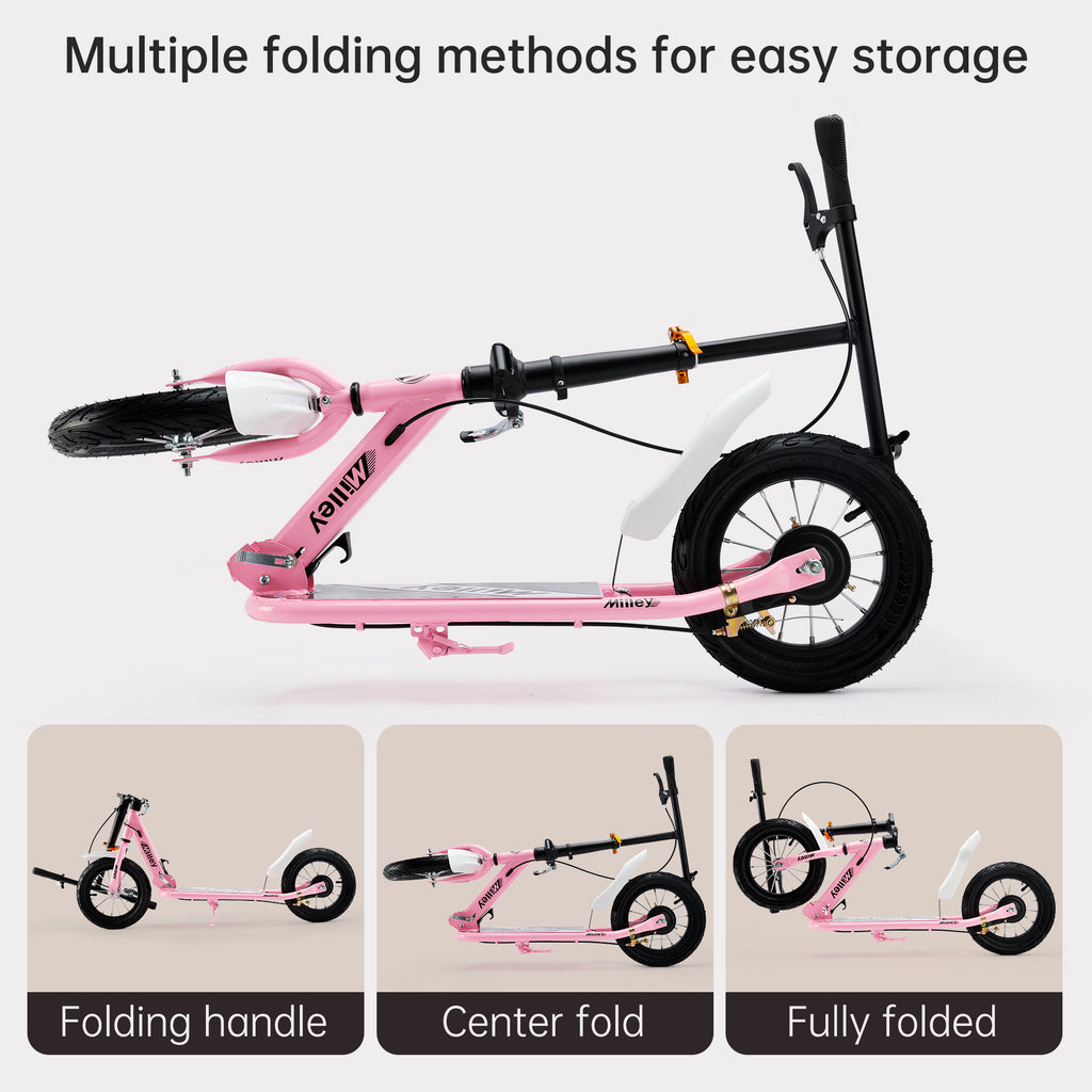 Iskuja vaimentava taittuva skootteri aikuisille ja teini-ikäisille 12" Suuret, tasaisesti rullaavat, ilmatäytteiset kumirenkaat