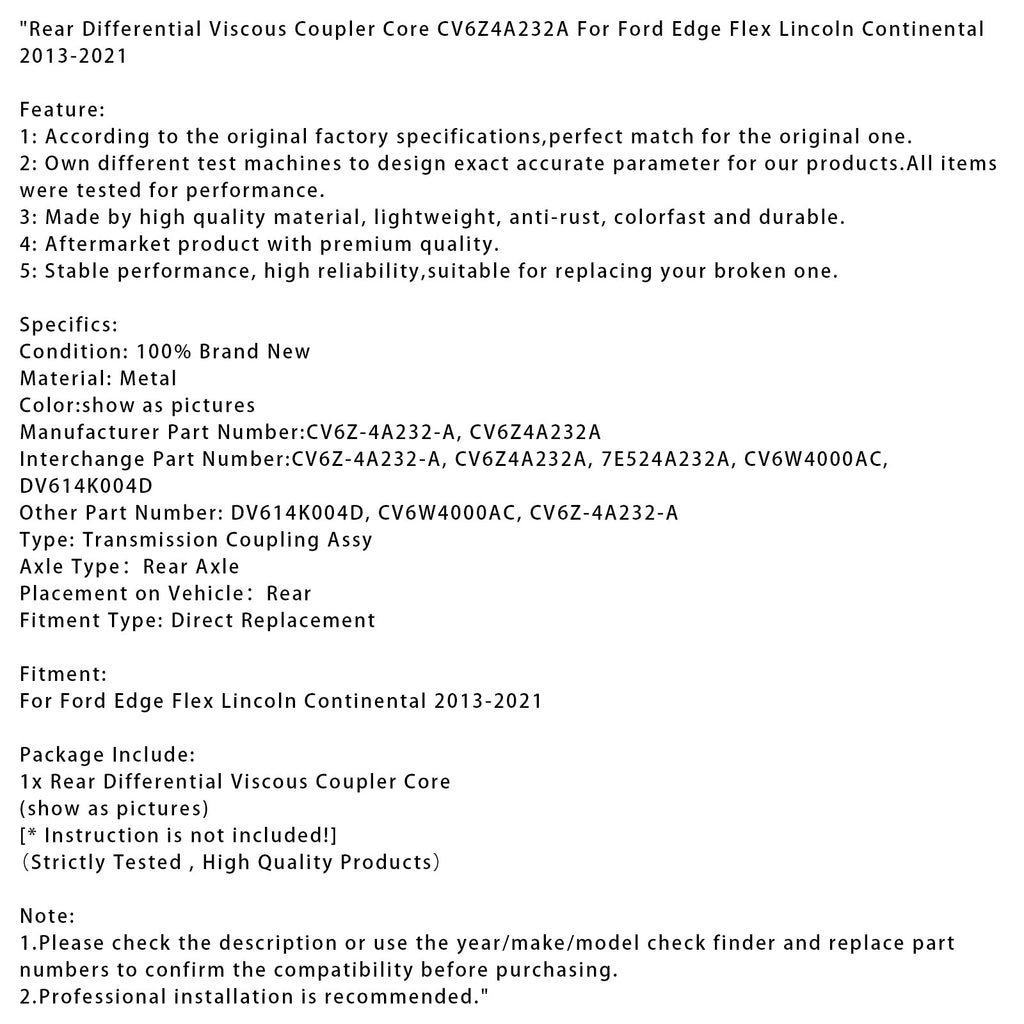 Takatasauspyörästön viskoosikytkimen ydin CV6Z4A232A Ford Edge Flex Lincoln Continentalille 2013-2021