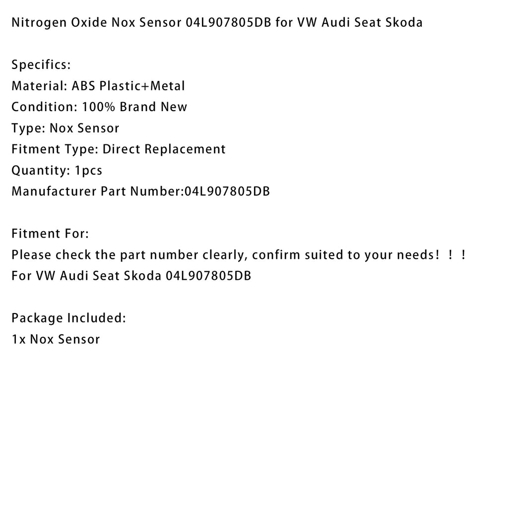 Typen oksidien (NOx) anturi 04L907805DB, yhteensopiva VW:n, Audin, Seatin ja Skodan kanssa