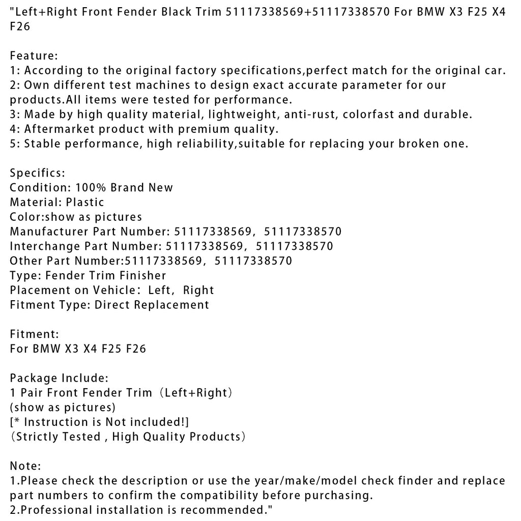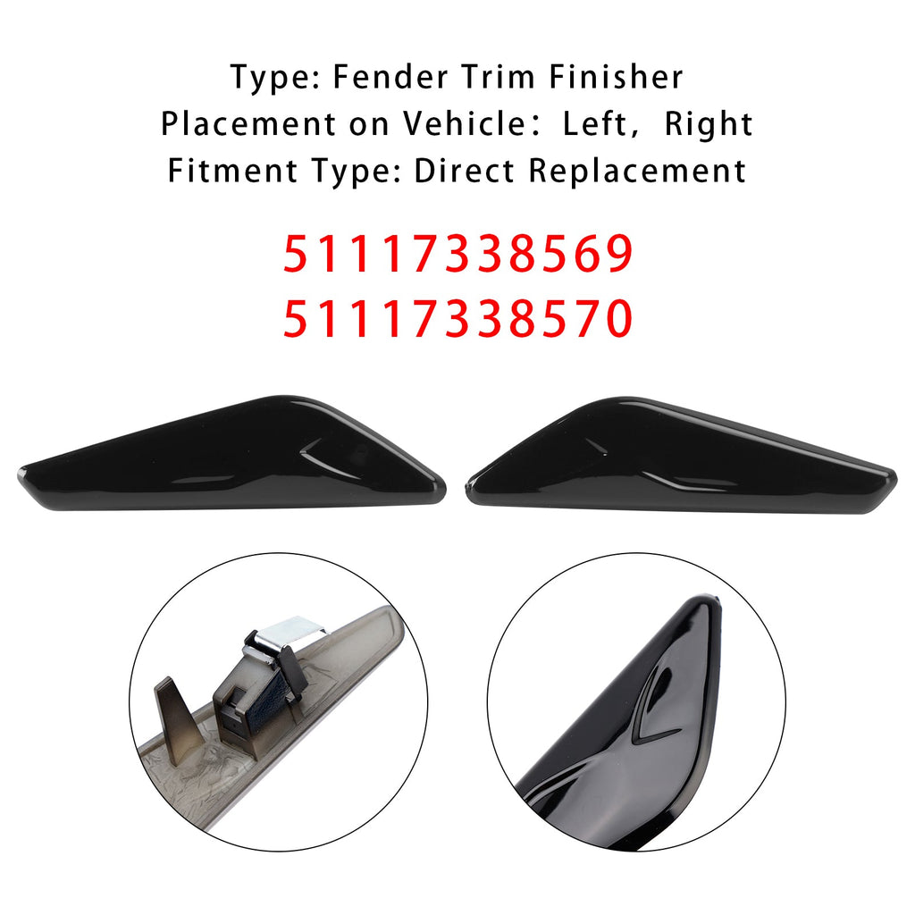 Mustat vasemman ja oikean etulokasuojan listat 51117338569+51117338570 yhteensopivat BMW X3 F25 X4 F26 kanssa