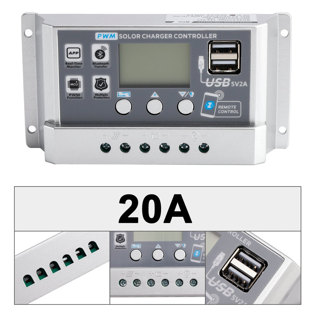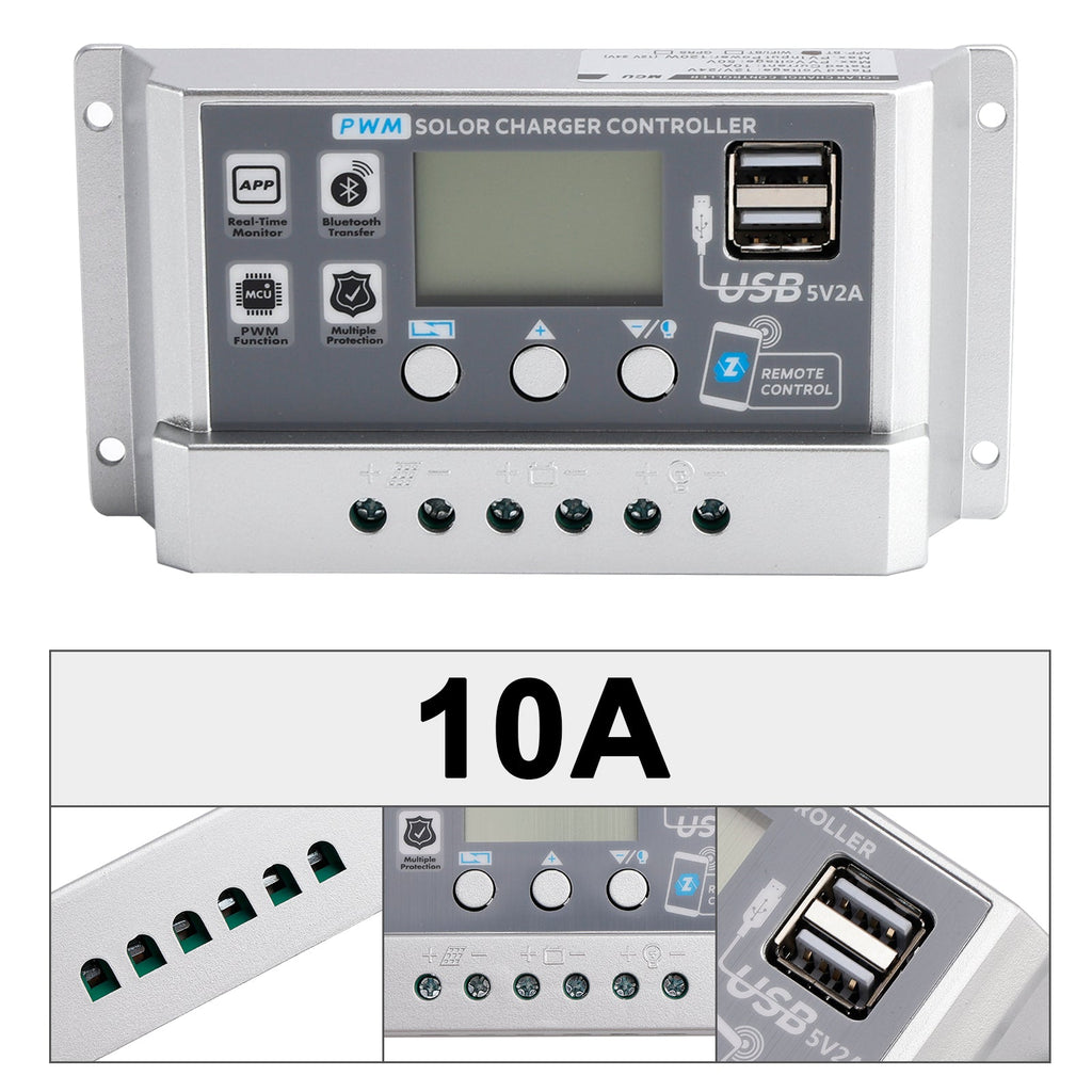 Contrôleur solaire PWM 10 A/20 A/30 A/40 A/50 A/60 A, application mobile, contrôle intelligent, contrôleur solaire 12 V/24 V, affichage du courant, contrôleur de lampadaire solaire, démarrage 0 V