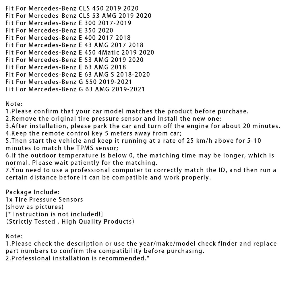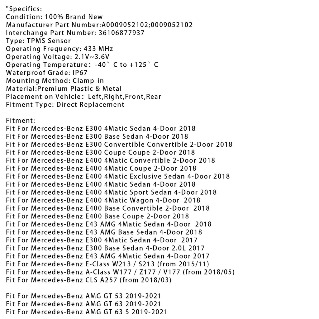 Capteur de pression des pneus TPMS 1X pour Mercedes-Benz Classe AE W213 A0009052102