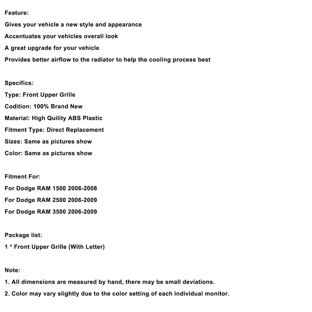 Calandre de pare-chocs avant compatible avec Dodge RAM 1500 (2006-2008) et RAM 2500/3500 (2006-2009)