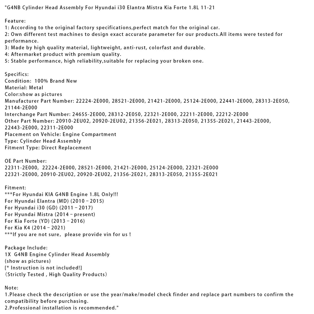 Culasse G4NB pour Hyundai i30, Elantra, Mistra, Kia Forte 1.8L (2011-2021)