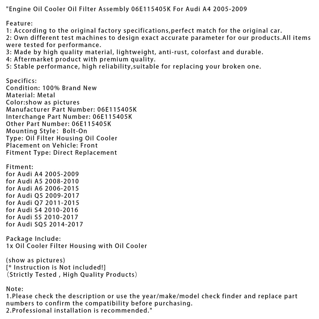 Filtre à huile pour refroidisseur d'huile moteur 06E115405K pour Audi A4 2005-2009