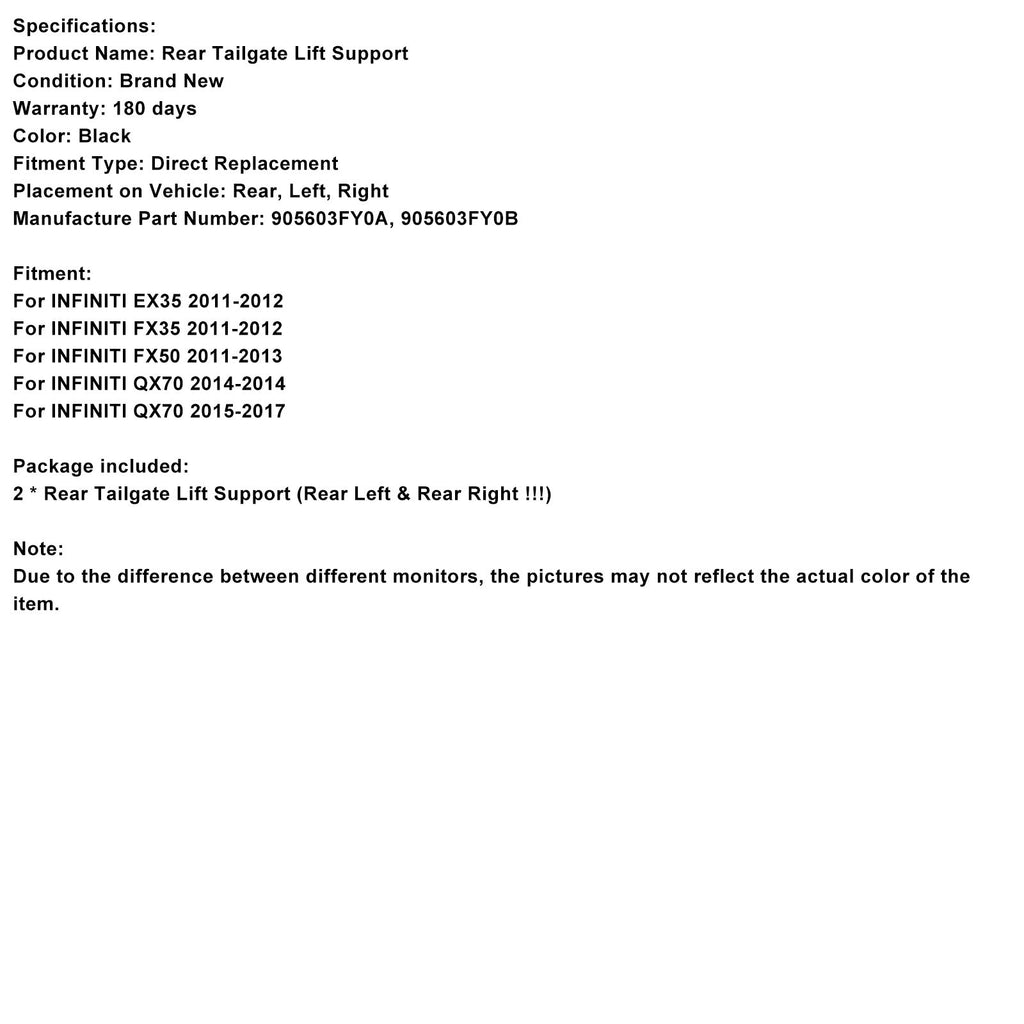 Lot de 2 vérins de hayon électriques arrière 905603FY0A compatibles avec Infiniti EX35 FX35 FX50 QX70