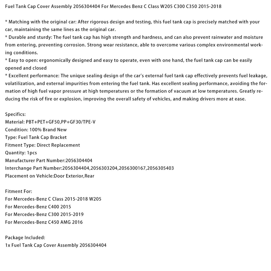 Couvercle de bouchon de réservoir de carburant 2056304404 compatible avec Mercedes-Benz Classe C W205 C300 C350 2015-2018