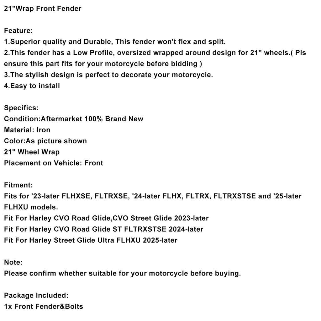 Garde-boue avant enveloppant de 21 pouces compatible avec CVO Street Road Glide 2023-2025