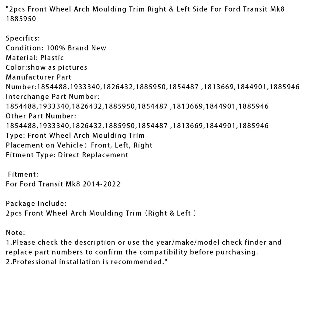 2014-2022 Ford Transit Mk8 2 pièces Moulures de passage de roue avant droite et gauche 1885950