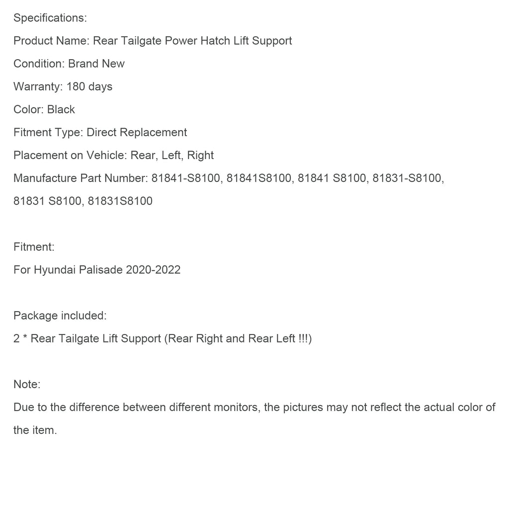 2 vérins de hayon électriques 81831-S8100 compatibles avec Hyundai Palisade 2020-2022