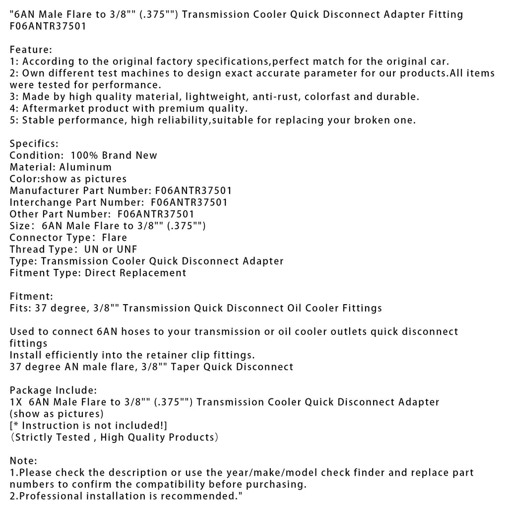 1 adaptateur de déconnexion rapide pour refroidisseur de transmission évasé mâle 6AN vers 3/8"" (0,375"")
