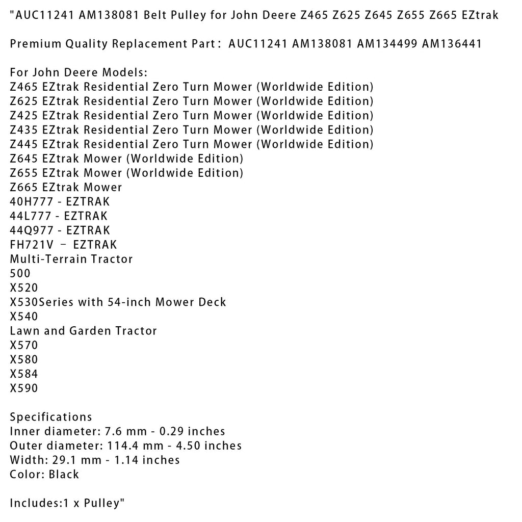 Poulie AUC11241 AM138081 pour John Deere Z465 Z625 Z645 Z655 Z665 EZtrak