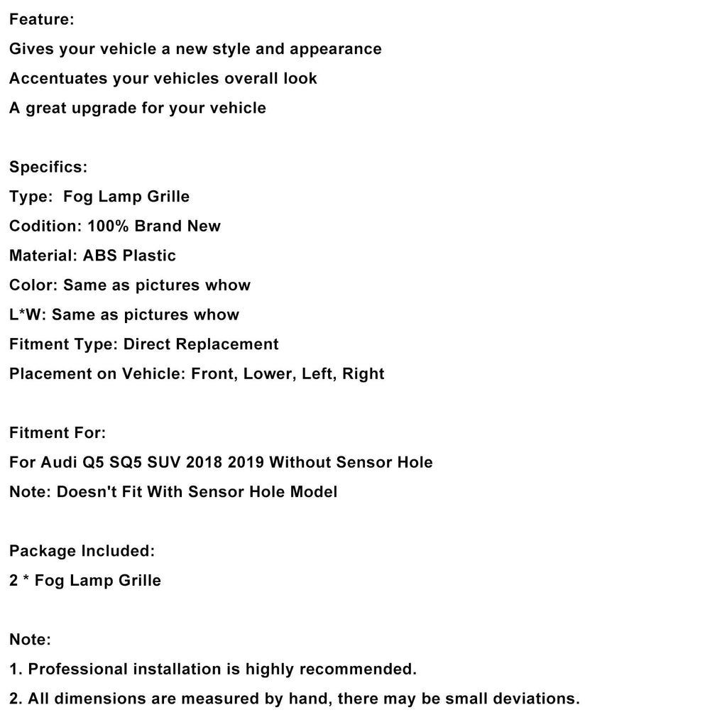 Pour Audi Q5 SQ5 SUV 2018 2019 sans trou de capteur