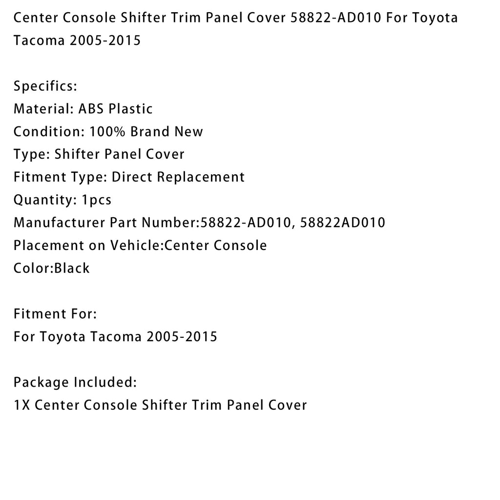 Cache de panneau de garniture de levier de vitesse de console centrale 58822-AD010 compatible avec Toyota Tacoma 2005-2015