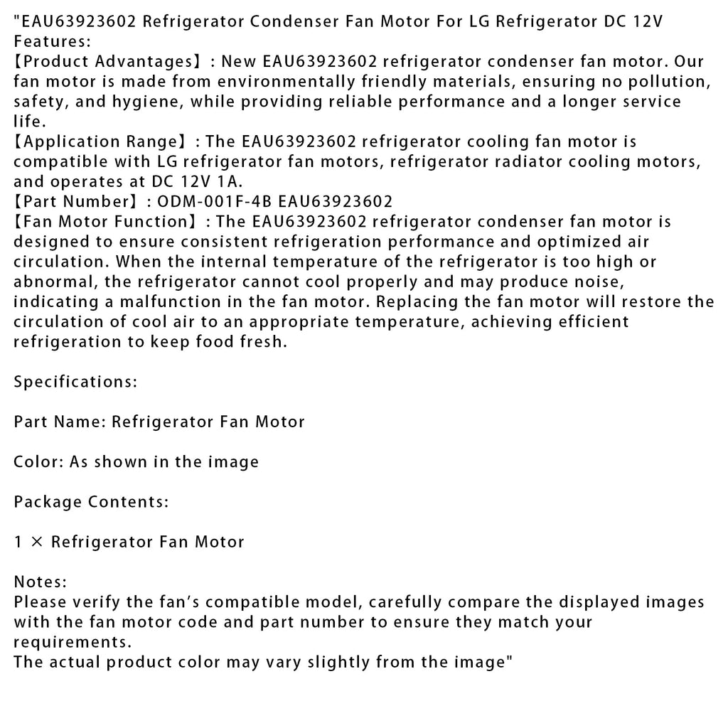 【Gamme d'application】: Le moteur de ventilateur de refroidissement de réfrigérateur EAU63923602 est compatible avec les moteurs de ventilateur de réfrigérateur LG, les moteurs de refroidissement de radiateur de réfrigérateur et fonctionne à DC 12V 1A.