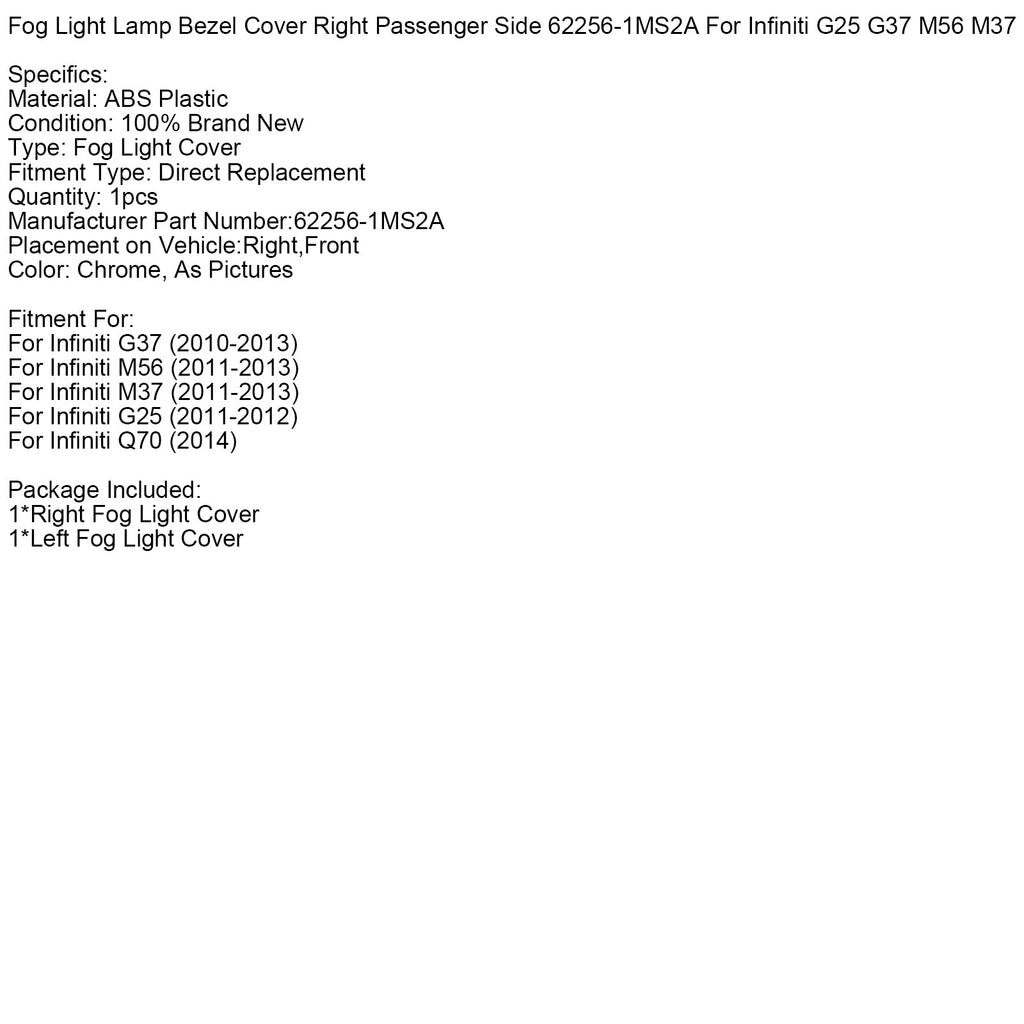 Cache de feu antibrouillard côté passager droit 62256-1MS2A pour Infiniti G25 G37 M56 M37