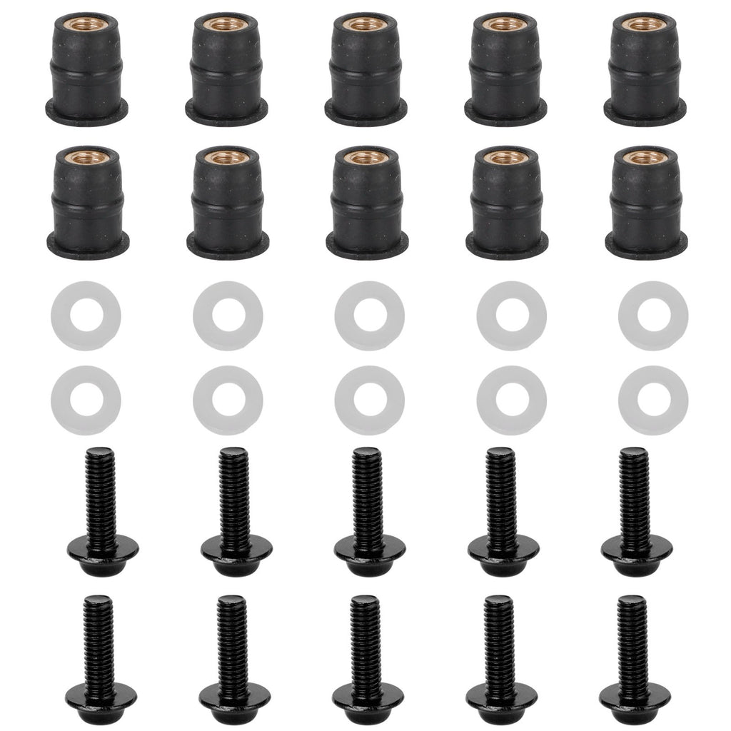 10 pièces moto pare-brise bouclier aluminium M5 x 16mm vis boulon et caoutchouc bien écrous et rondelles kit