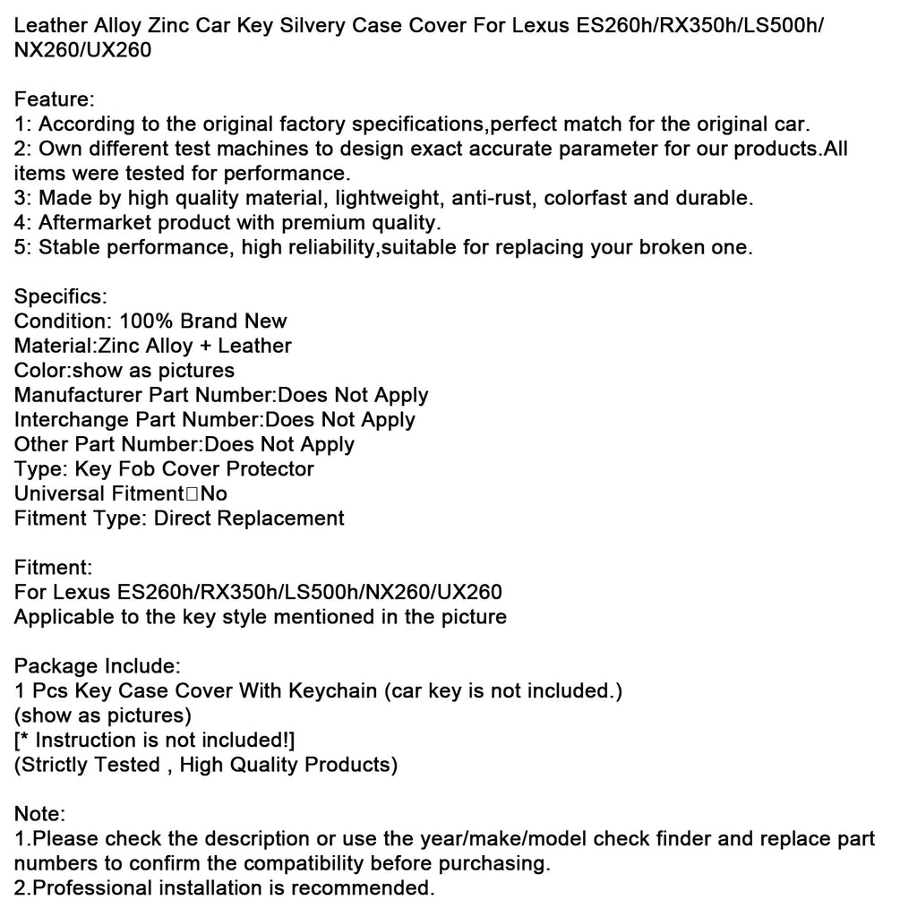 Étui argenté en cuir, alliage de zinc et pour clé de voiture Lexus ES260h/RX350h/LS500h/NX260/UX260