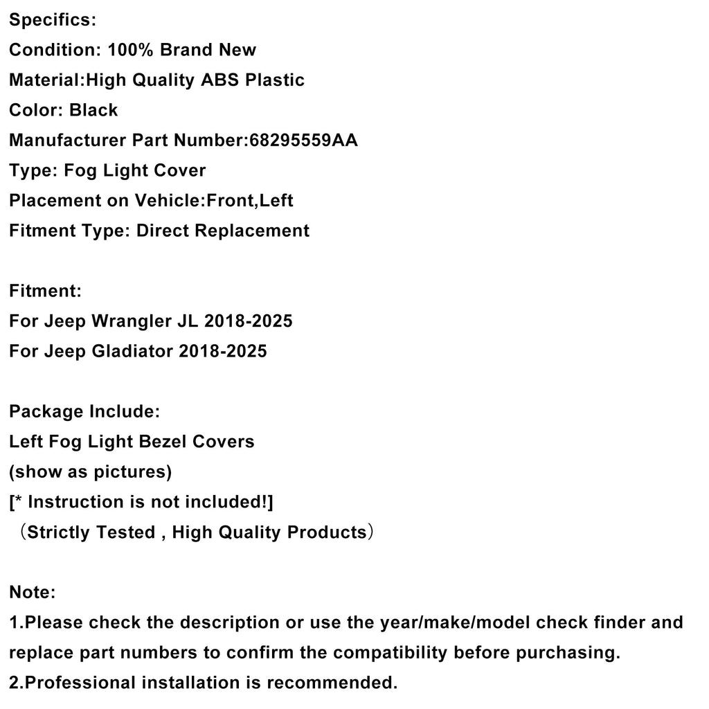 Garniture de feu antibrouillard gauche pour Jeep Wrangler JL Gladiator 2018-2025 68295559AA