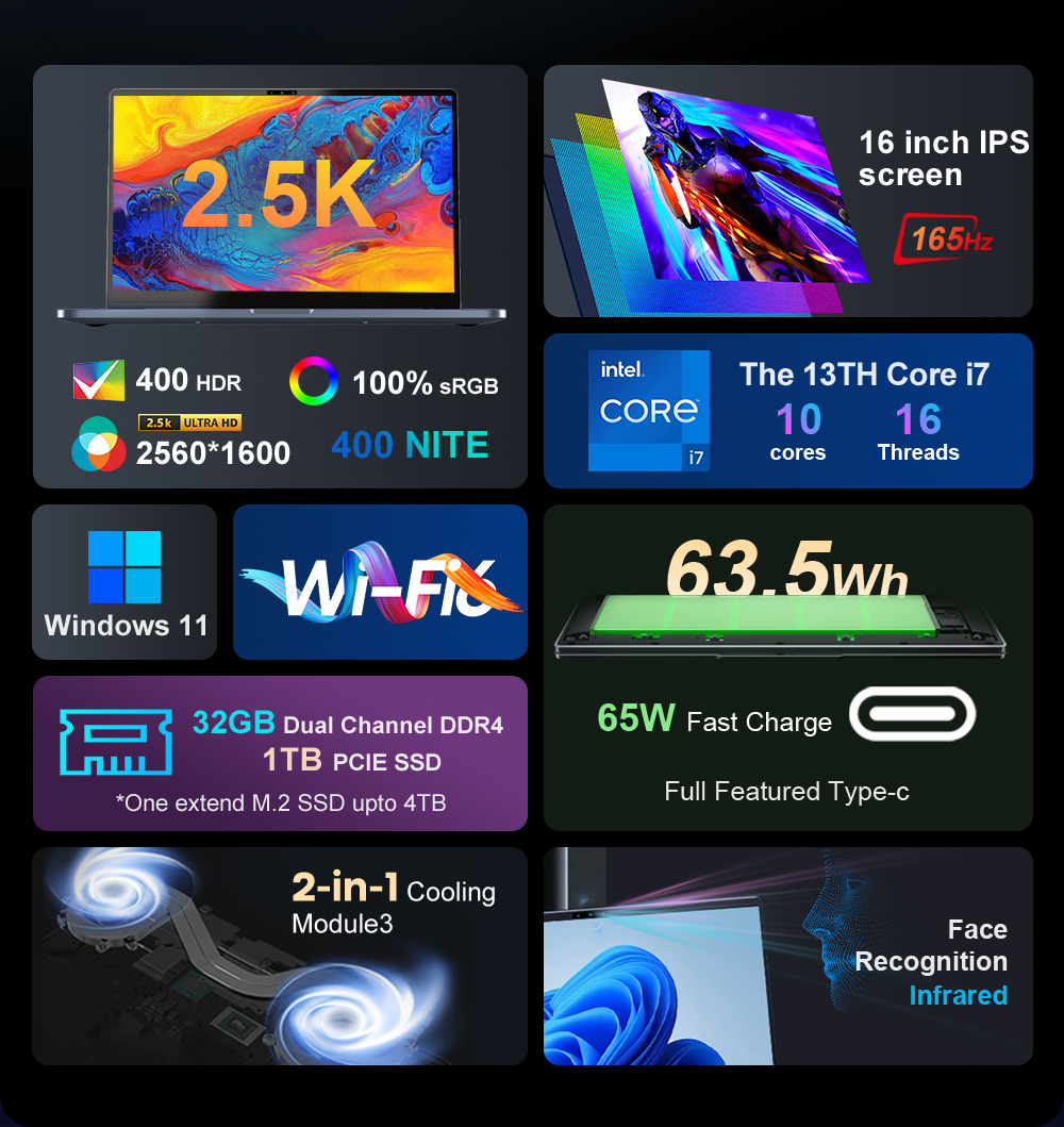 Ninkear N16 Pro - Ordinateur Portable 16" 2.5K 165Hz