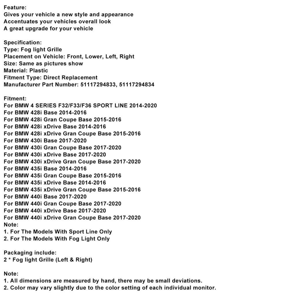 Grille de phare antibrouillard avant partiellement ouverte 51117294831 pour BMW F32 F33 F36 418D