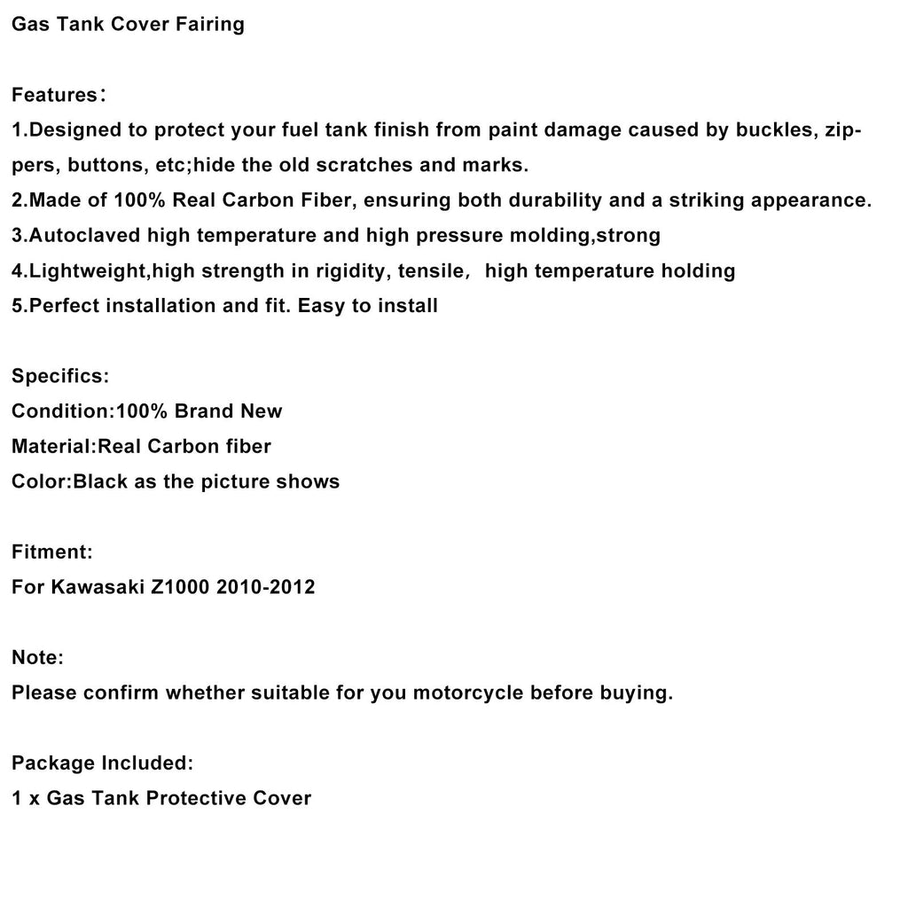 Carénage de réservoir d'essence compatible avec Kawasaki Z1000 2010-2012