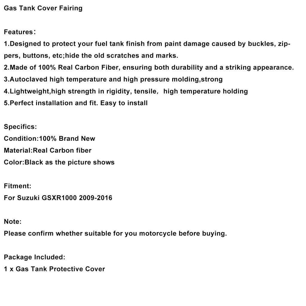 Carénage de réservoir d'essence compatible avec Suzuki GSXR1000 GSX-R1000 2009-2016