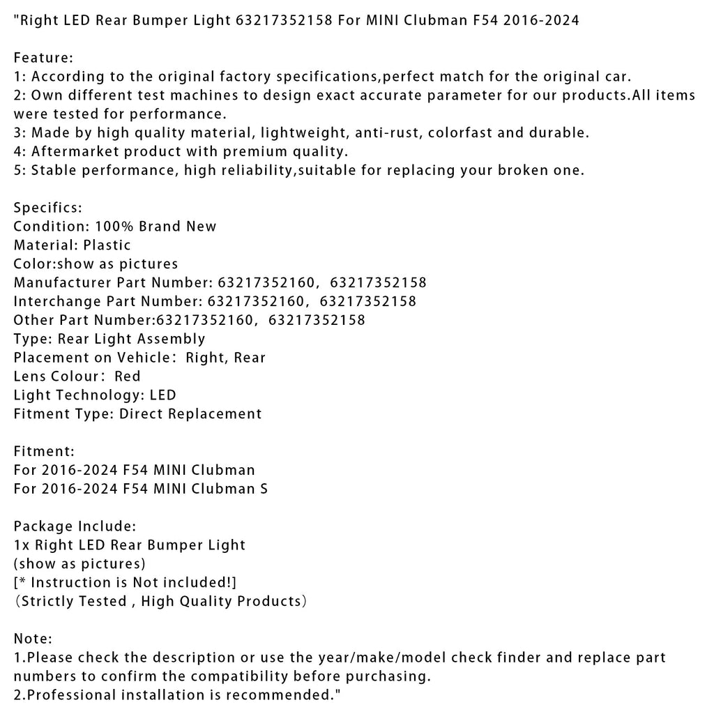 Feu de pare-chocs arrière droit à LED 63217352158 pour MINI Clubman F54 2016-2024