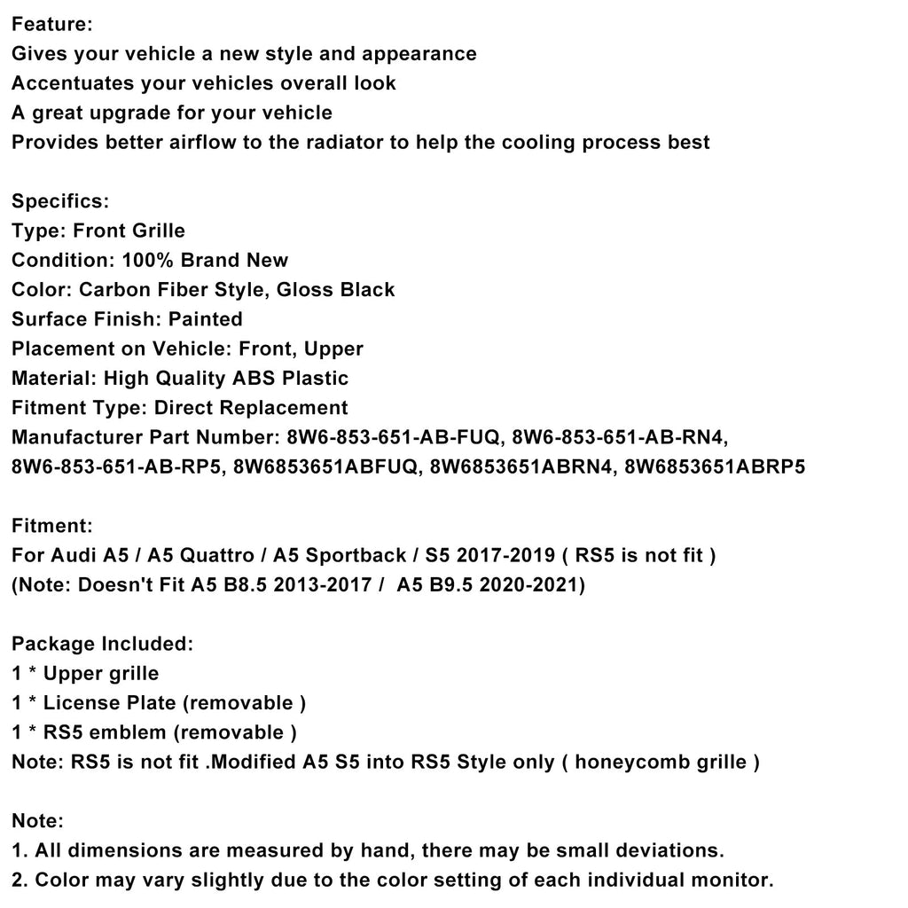 Remarque : le RS5 n'est pas compatible. A5 S5 modifié en style RS5 uniquement (calandre en nid d'abeille)