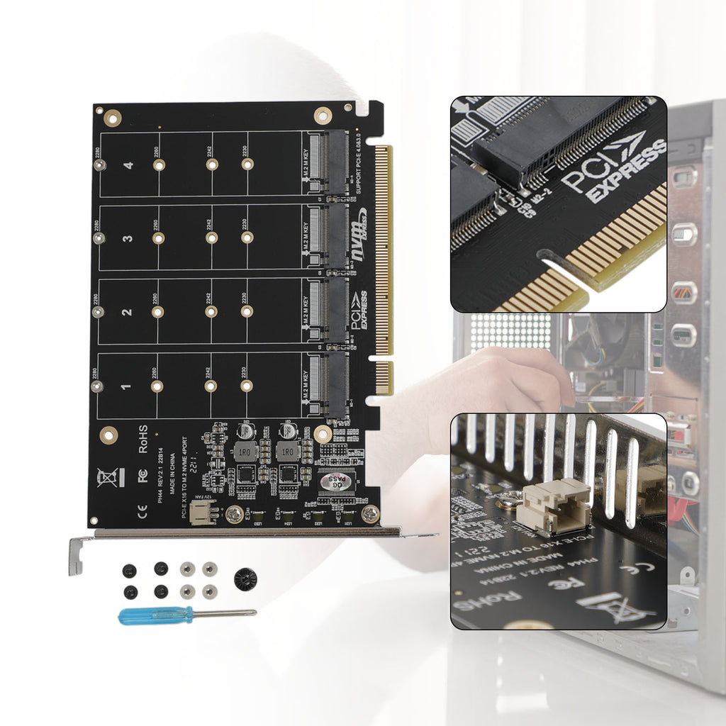 Carte de répartition de signaux PCI-E PH44 pour disques NVME - Carte array 4 disques compatible SSD/M.2 PCI-E et protocole NVME
