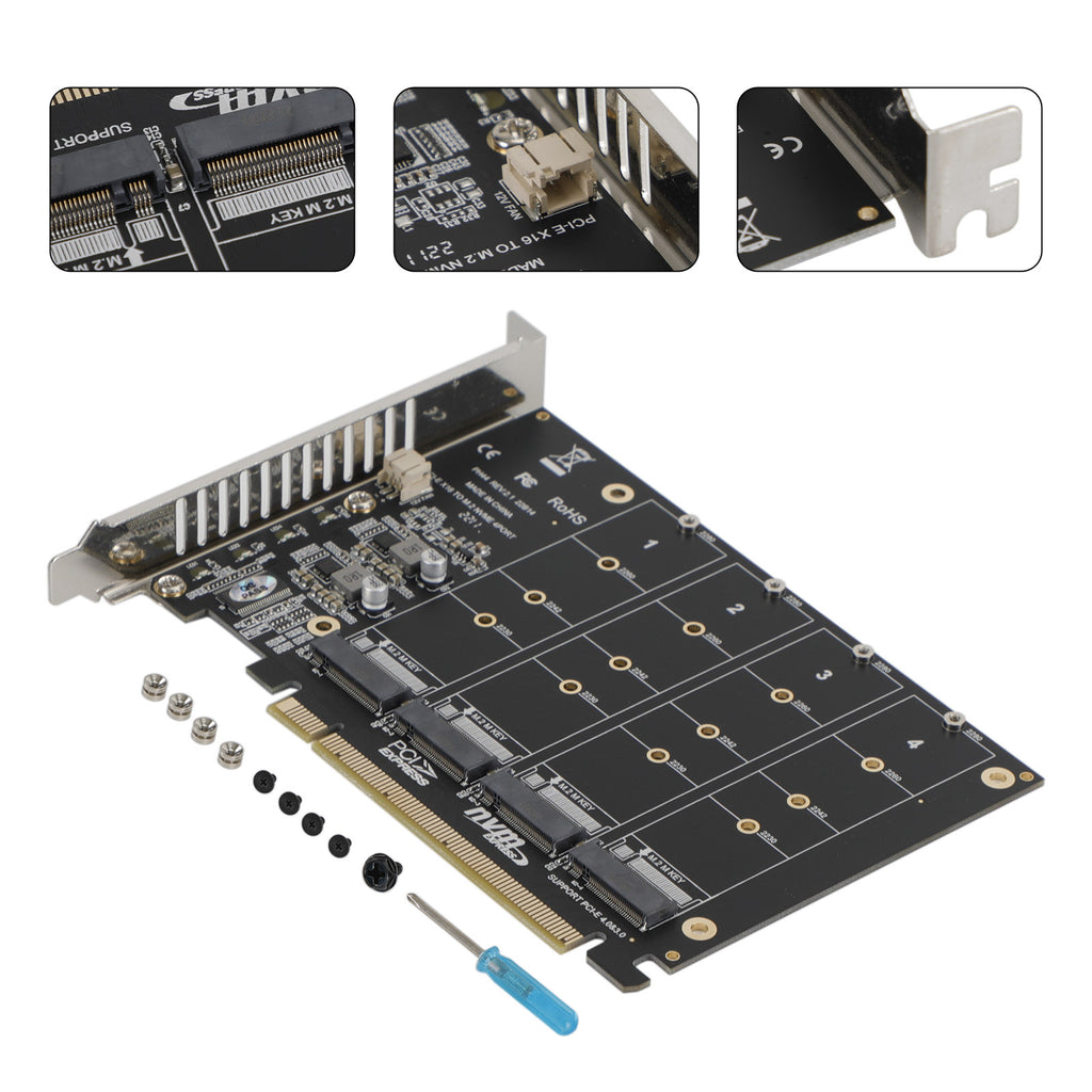 Carte d'extension PCI-E X16 4 disques avec 4 canaux 32 Gbps pleine vitesse et expansion simultanée