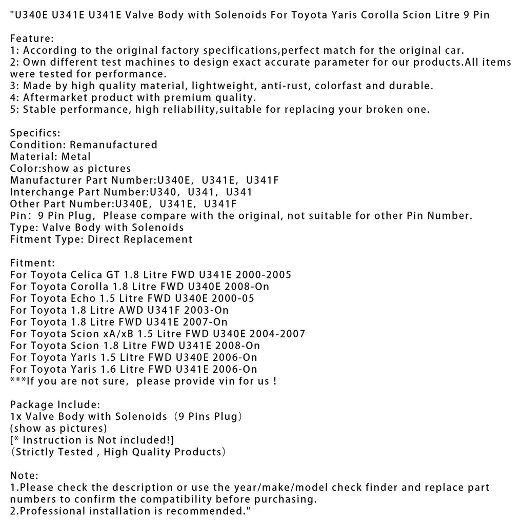 Corps de vanne U340E U341E U341E avec solénoïdes pour Toyota Yaris Corolla Scion Litre 9 broches