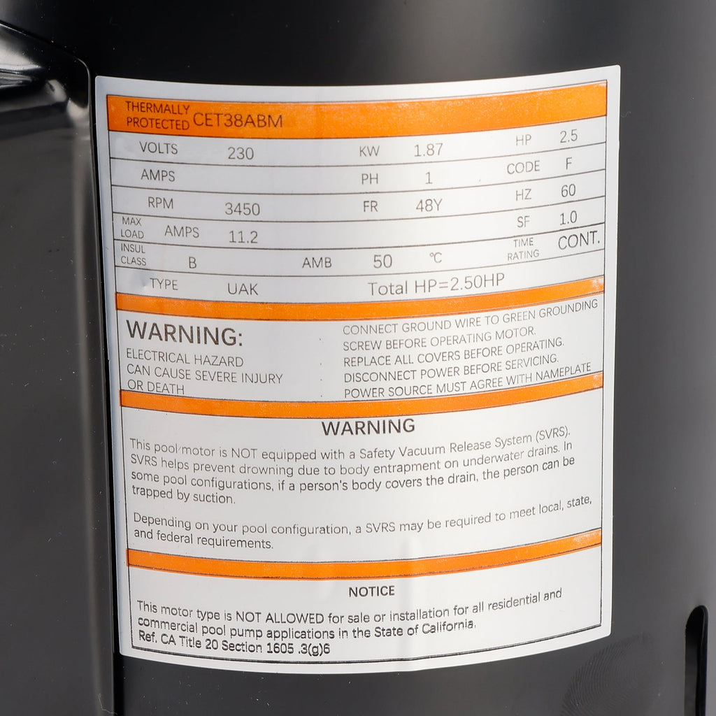 Moteur de piscine USQ1252 2,5 CV 230 V 48 Y bride carrée