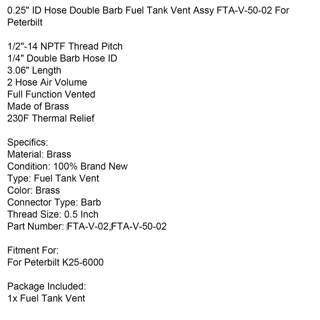 Tubo di 0,25""diametro interno, doppia scanalatura, gruppo di sfiato del serbatoio del carburante FTA-V-50-02 per Peterbilt