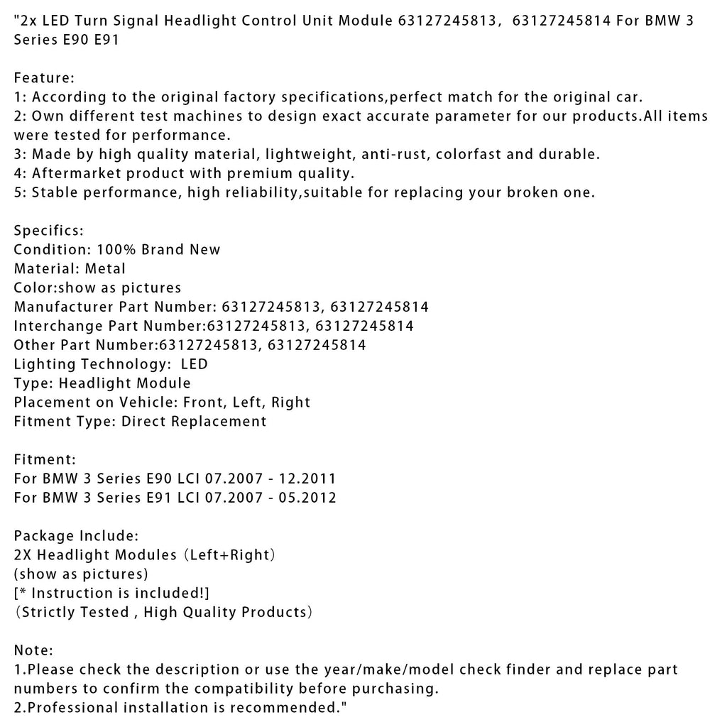 Modulo di controllo degli indicatori di direzione a LED da 2 pezzi 63127245813 63127245814 per BMW Serie 3 E90 E91