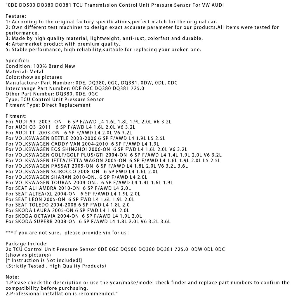 2x Sensore di pressione per unità di controllo TCU 0DE 0GC DQ500 DQ380 DQ381 725.0 0DW 0DL 0DC