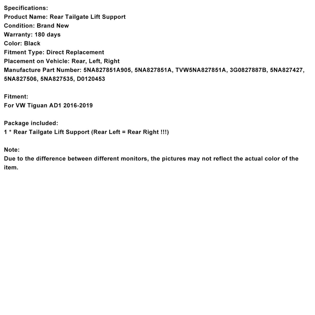 1 NA827851A ammortizzatore a gas per portellone posteriore elettrico compatibile con VW TIGUAN AD1 2016-2019