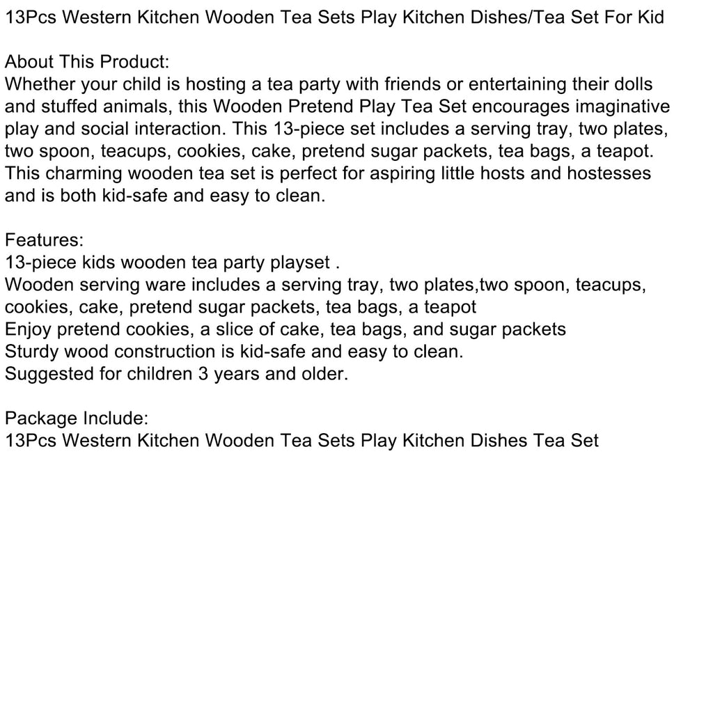 Set da tè in legno da 13 pezzi per cucina occidentale, set da tavola per giocare alla cucina, set da tè