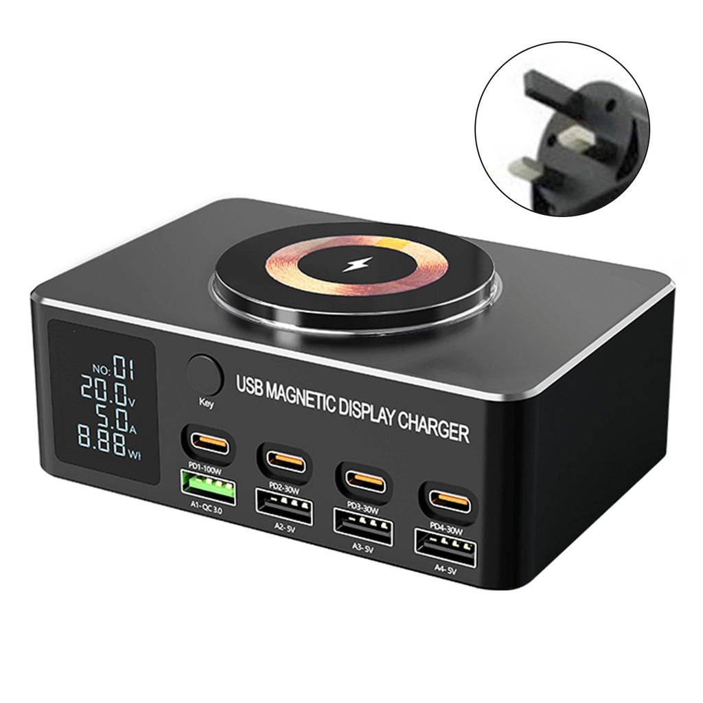 Caricabatterie rapido da 140 W, display digitale intelligente PD100W, per telefono cellulare, laptop, ricarica wireless magnetica, caricabatterie USB multiporta, spina UK
