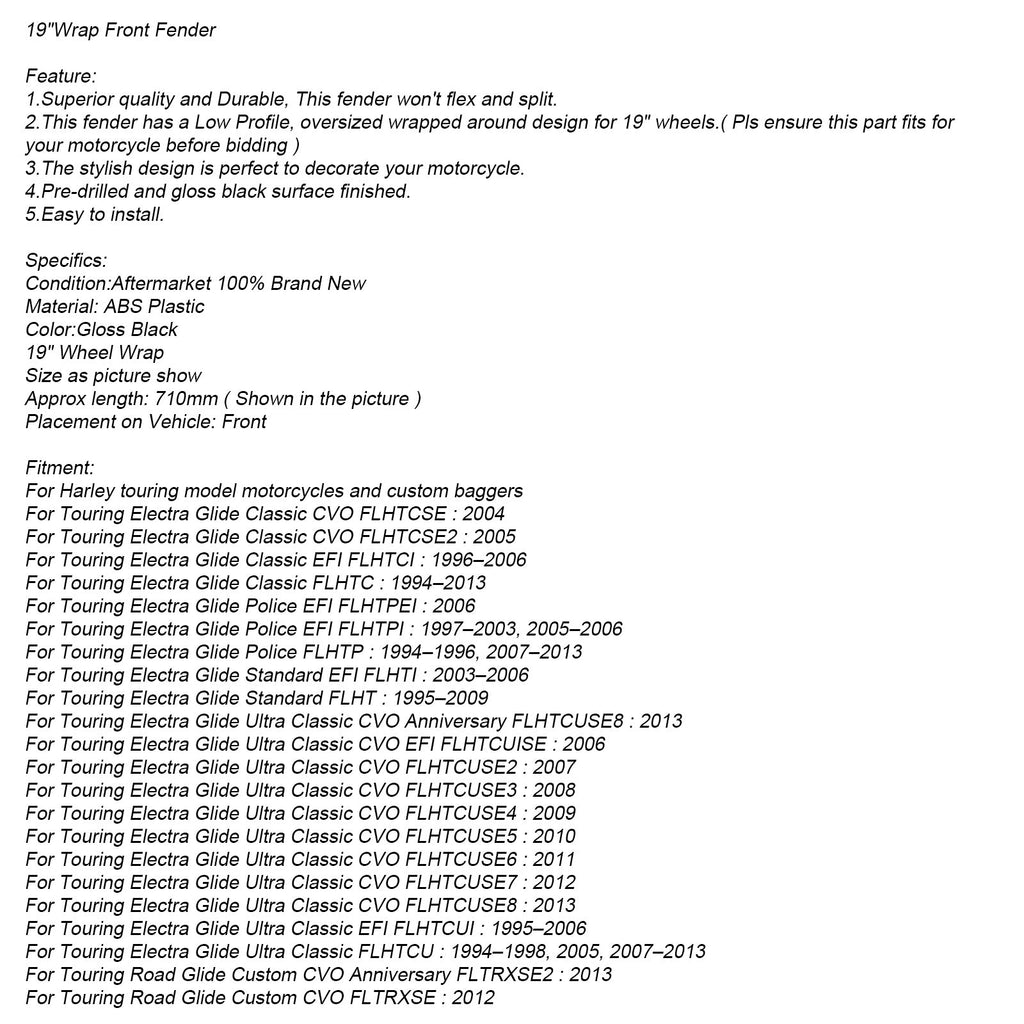 Parafango anteriore avvolgente da 19 pollici compatibile con i modelli Touring Electra Street Road Glide Baggers FLHT e FLHR