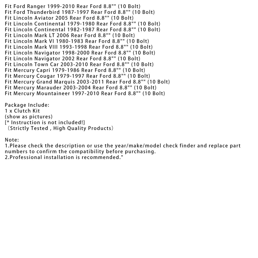 Per Ford 8.8"" Truck Rear (copertura a 10 bulloni) (le orecchie sui dischi frizione sono alte 1/2"")